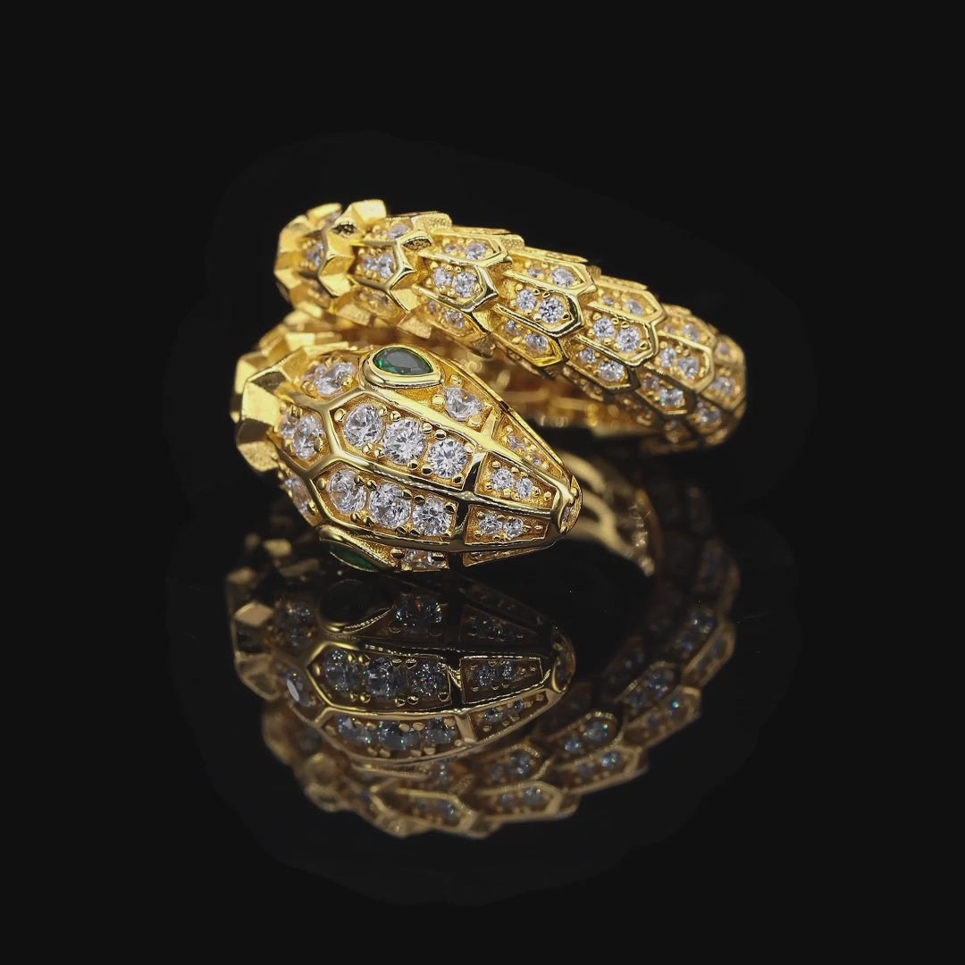 Bague Serpent Or Vermeil 18K avec Diamants Cristallins et Yeux Émeraude Bijou Luxe Statement