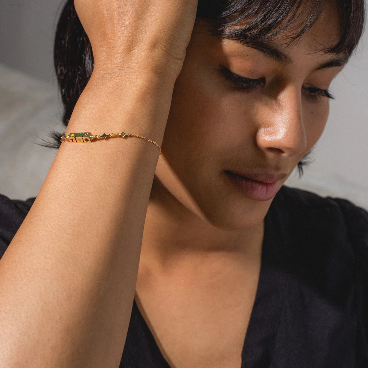 Le Stack Gagnant : Il est magnifique en accumulation. Associez-le à un bracelet chaîne simple comme le Jardin d'Or pour mélanger les motifs, ou portez-le seul pour laisser les couleurs "pop" ressortir sur une tenue noire.