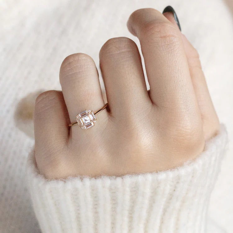 Design Géométrique Unique : Un arrangement délicat de baguettes et de pierres carrées créant une silhouette vintage iconique.
