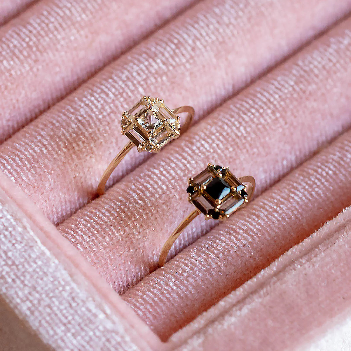 Grâce à son anneau de 1 mm, cette bague est idéale pour le "stacking". Mariez-la avec un anneau fin en or ou une alliance incurvée pour souligner sa forme géométrique. Note : Pour préserver la finesse de l'anneau, nous conseillons de retirer votre bague lors d'activités physiques intenses.