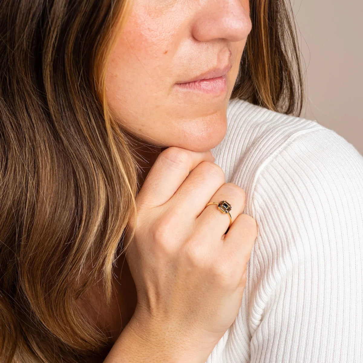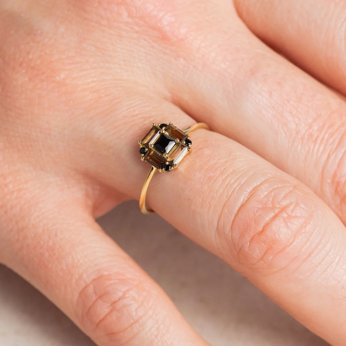 Bague Art Déco en Or 14k – Topaze Blanche ou Quartz Fumé